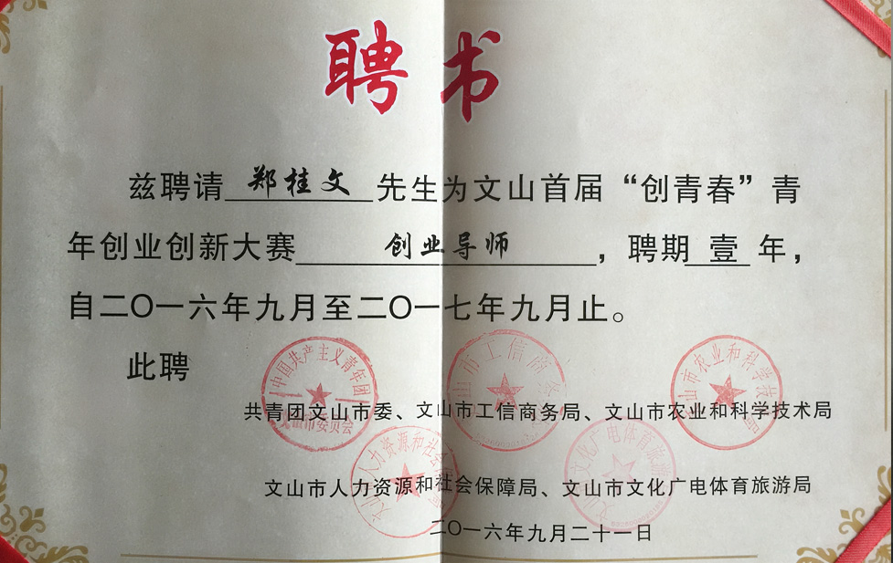 郑桂文应邀出席文山市首届创业大赛并担任导师