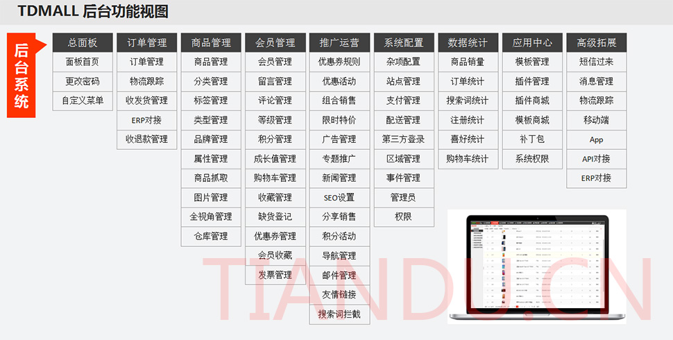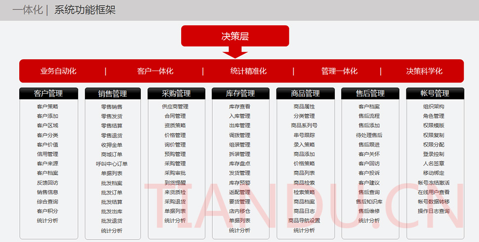 k8凯发科技互联研究院(博士后科研工作站)、k8凯发软件系统有限公司、k8凯发科技股份有限公司合力近400人专业研发团队,结合自身11年电子商务运营经验,全力打造TDMALL电商ERP系统:整合电商网站平台(PC版、触屏版、微信版、APP版)、ERP企业资源管理系统、CRM客户关系管理系统、财务管理系统、OA办公系统和Call Center呼叫中心等系统,实现前端电商平台及后端强大支撑系统的管理。