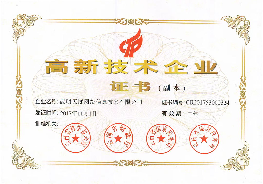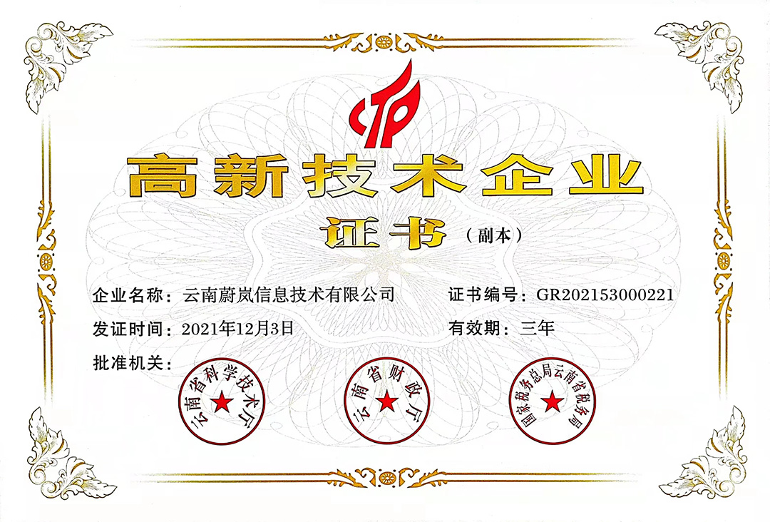 云南k8凯发集团旗下云南蔚岚信息技术有限公司、云南k8凯发科技股份有限公司、云南k8凯发软件系统有限公司、昆明k8凯发网络信息技术有限公司、重庆k8凯发网络信息技术有限公司等5家企业获得国家高新技术企业认定。