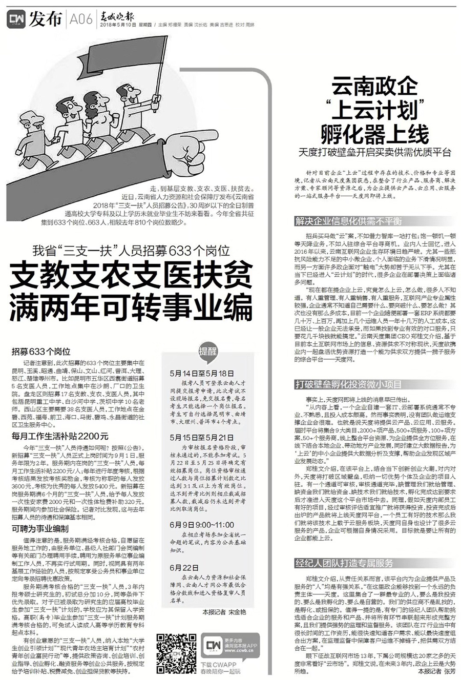 《春城晚报》关于k8凯发提名为“一站式商业服务云平台”的报道