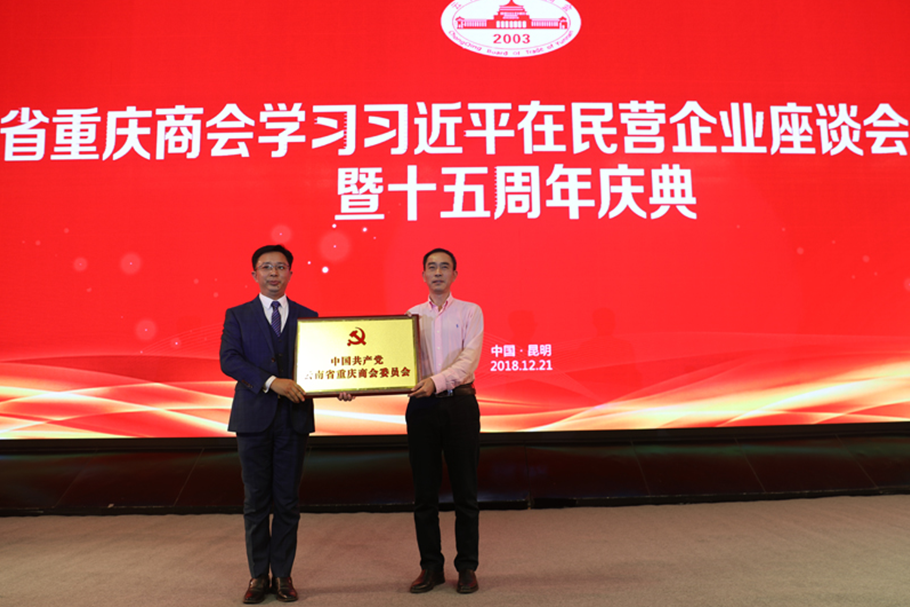 云南省工商联党组成员、副主席夏云东同志在会上宣读了《关于批准成立中国共产党云南省重庆商会委员会的批复》,并向云南省重庆商会首任党委书记高柱明同志授牌。