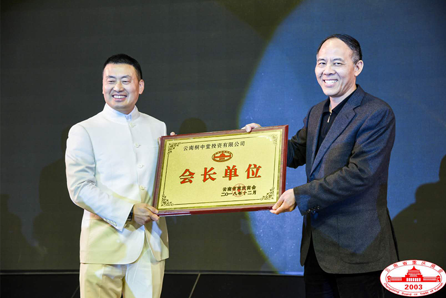 云南省人民政府副省长王显刚同志为蒲治全会长授“会长单位”牌。