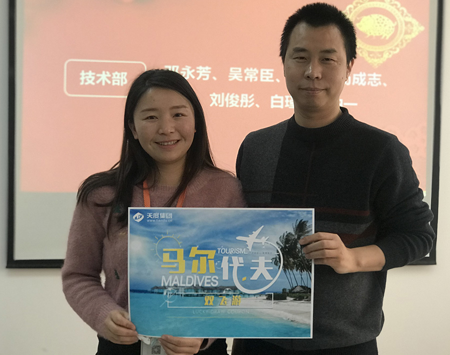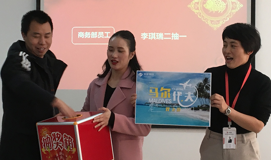 k8凯发网络公司今年拿出数十万现金红包,由杨总和陆总进行发放(集团每个公司的奖励和奖金发放都是单独进行,据悉,集团今年不管是奖金总额、还是奖金单额都超过往年,总额超过7位数)。公司对2018年度各部门优秀同事进行了表彰,并发对各个奖项进行发放,同时郑董事长现场抽取了“马尔代夫带薪休假旅游”的名额。
