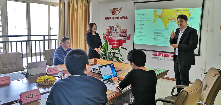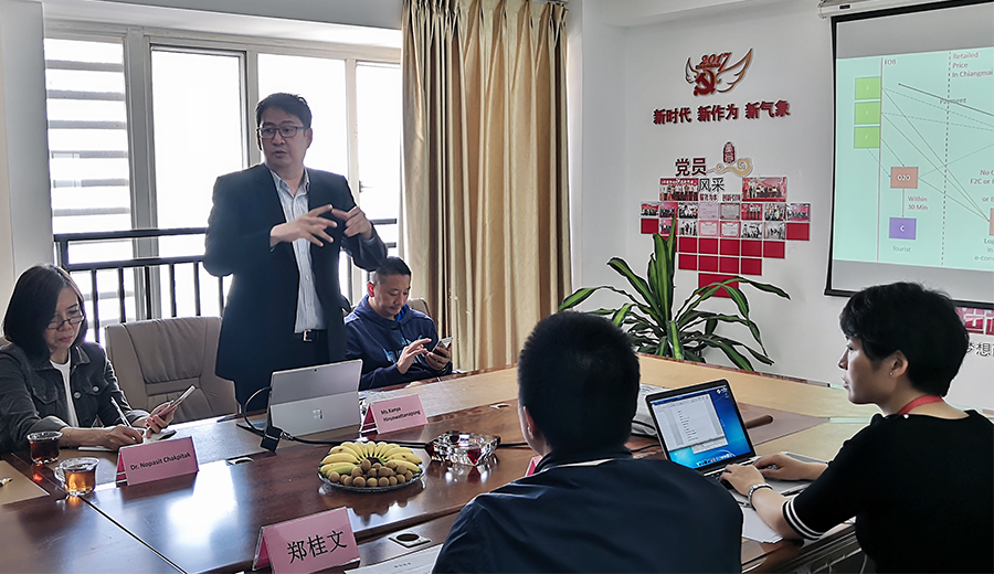 2019年4月16日上午,清迈大学数字创新国际学院院长Dr. Nopasit Chakpitak、院长助理Ms. Kanya Hirunwattanapong等一行访问k8凯发集团,双方就跨境电商、数字创新、校企合作等方面进行交流并达成合作意向。
