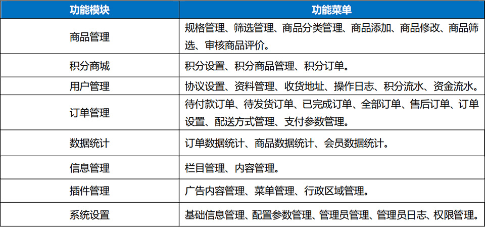 小帅云店-电商小程序功能列表: