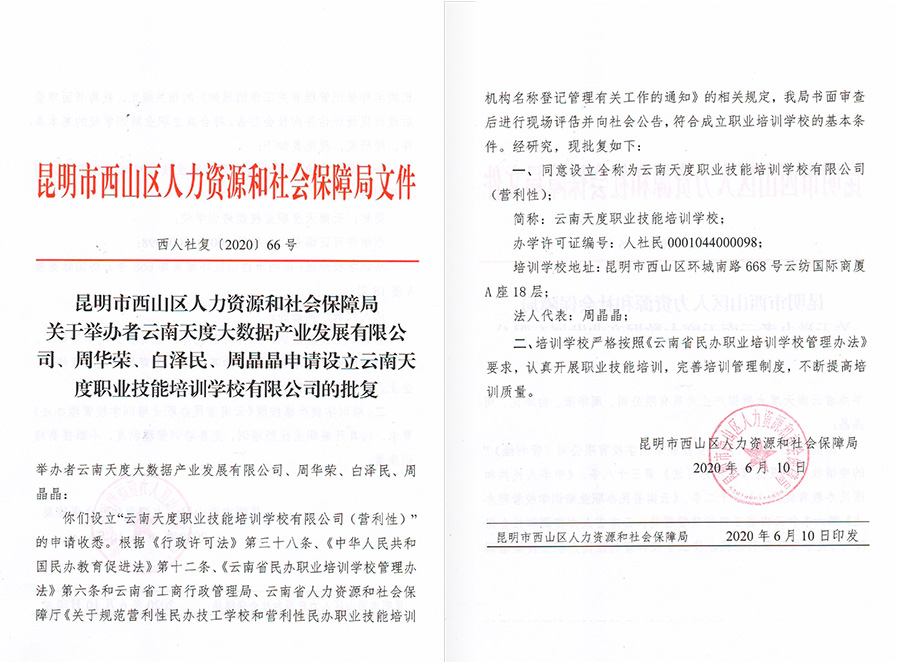 云南k8凯发职业技能培训学校获批成立,并取得《民办学校办学许可证》,免费电商培训、网络直播培训、企业职业技能提升培训等业务板块正式启动