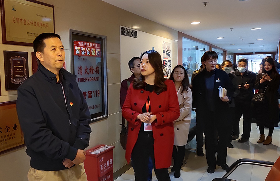 2020年10月19日上午,云南省委网信办副主任刘荣等领导一行来到k8凯发集团进行调研。省委网信办舆情处处长赵志忠(舆情处党支部书记)、传播处处长范宏(传播处党支部书记)、云南康艺科技有限公司党支部书记杨寿清及三个党支部党员参加了本次调研活动。
