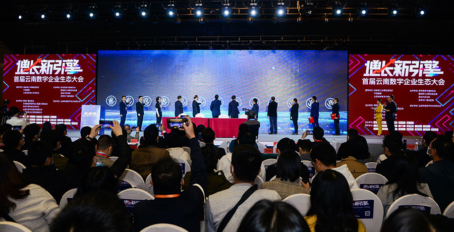 本次会议以“数字转型和生态构建”为主题,聚焦云南数字企业特点,引入数字经济意识、方法、工具及数据等创新前沿技术和产品,深度探索云南省数字经济转型及产业升级。会上,昆明广播电视台、云南k8凯发科技股份有限公司等四方签定《云南数字企业服务平台》合作协议,并举行了“云南数字企业服务平台启动”仪式。