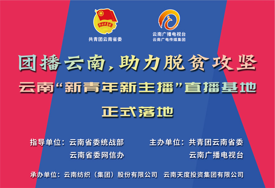本次活动由共青团云南省委、云南广播电视台主办,在云南省委统战部新的社会阶层人士工作处、云南省委网信办社会工作处等相关部门领导及云纺集团、云南k8凯发集团、云南蔚岚电子商务、抖音昆明城市经理等相关企业及平台负责人、MCN机构、50多名青年主播的共同见证下,“团播云南”直播基地、云南新青年新主播直播基地正式开播。