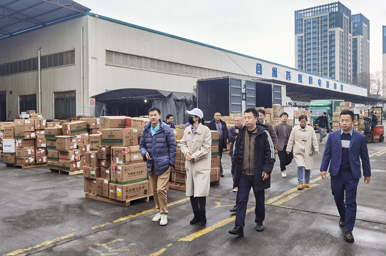 14日下午,考察团到达此次考察交流的第一站,四川合纵药易购医药股份有限公司电商基地,受到了四川合纵药易购医药股份有限公司董事、高级副总裁李宇欣带领的相关管理团队的热情接待。四川合纵药易购医药股份有限公司是中国首家医药产业互联网上市企业,是一家数智医药大健康生态型企业。业务涵盖医药新零售、医药B2B电商、数字化赋能、医药批发、医药公共服务、医药供应链、智能物流、C端矩阵、互联网医疗、医药健康金融、大健康管理等众多板块。为全产业链合作企业提供优质产品、先进平台、丰富资源、创新技术与完善服务,助力生态伙伴加速增长与永续发展,共同构建数智医药大健康产业链新生态。