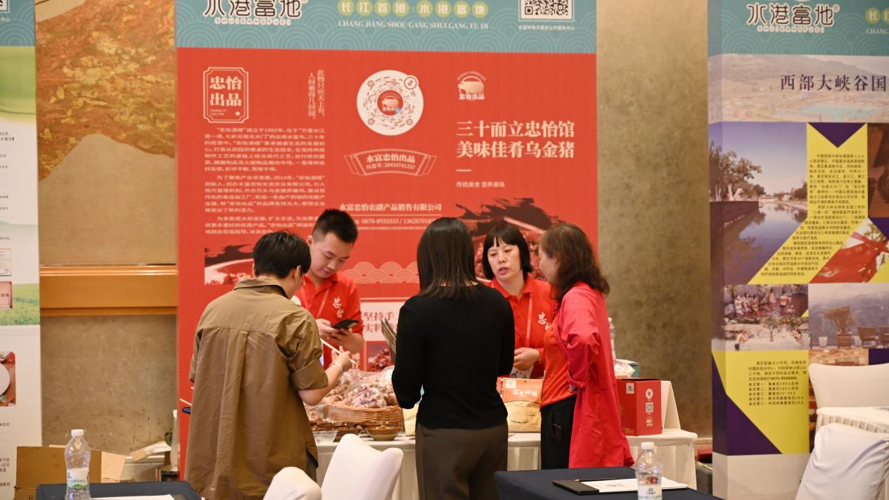 发布会接近尾声时,主持引领嘉宾们前往水富特色产品鉴区,现场品尝“水港富地”品牌精细挑选出的各类名优特产品,并可以去在线直播间参观、指导、交流及与粉丝互动。
