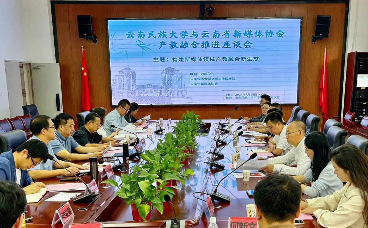 文学与传媒学院副院长陈顺尧、许丽华,学校教务处教学研究科科长张胜婷,学院新闻系主任张雯雯等与会人员围绕如何进一步深化校企合作和产教融合,完善人才培养模式,新媒体赋能云南经济社会发展、推动大学生实践实训与就业创业等内容踊跃发言。大家一致认为,云南省新媒体协会与云南民族大学联合相关高校、企业启动“产教融合共同体”创建工作,并同步推动成立“高校专委会”,建设开放型公共实践实训基地,不仅满足社会对创新型高质量人才的需求,对推进高校教学改革、提升技术技能人才培养质量,促进全省新媒体领域的教育与产业协同发展也具有重要意义。