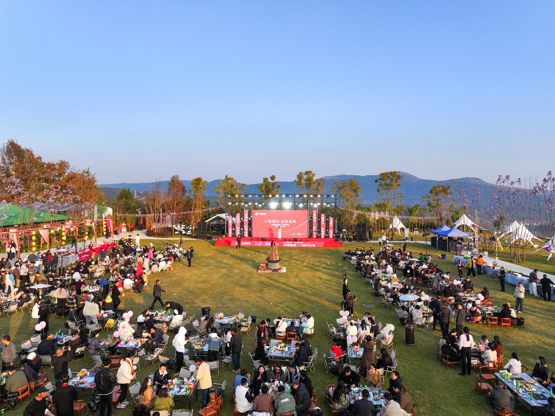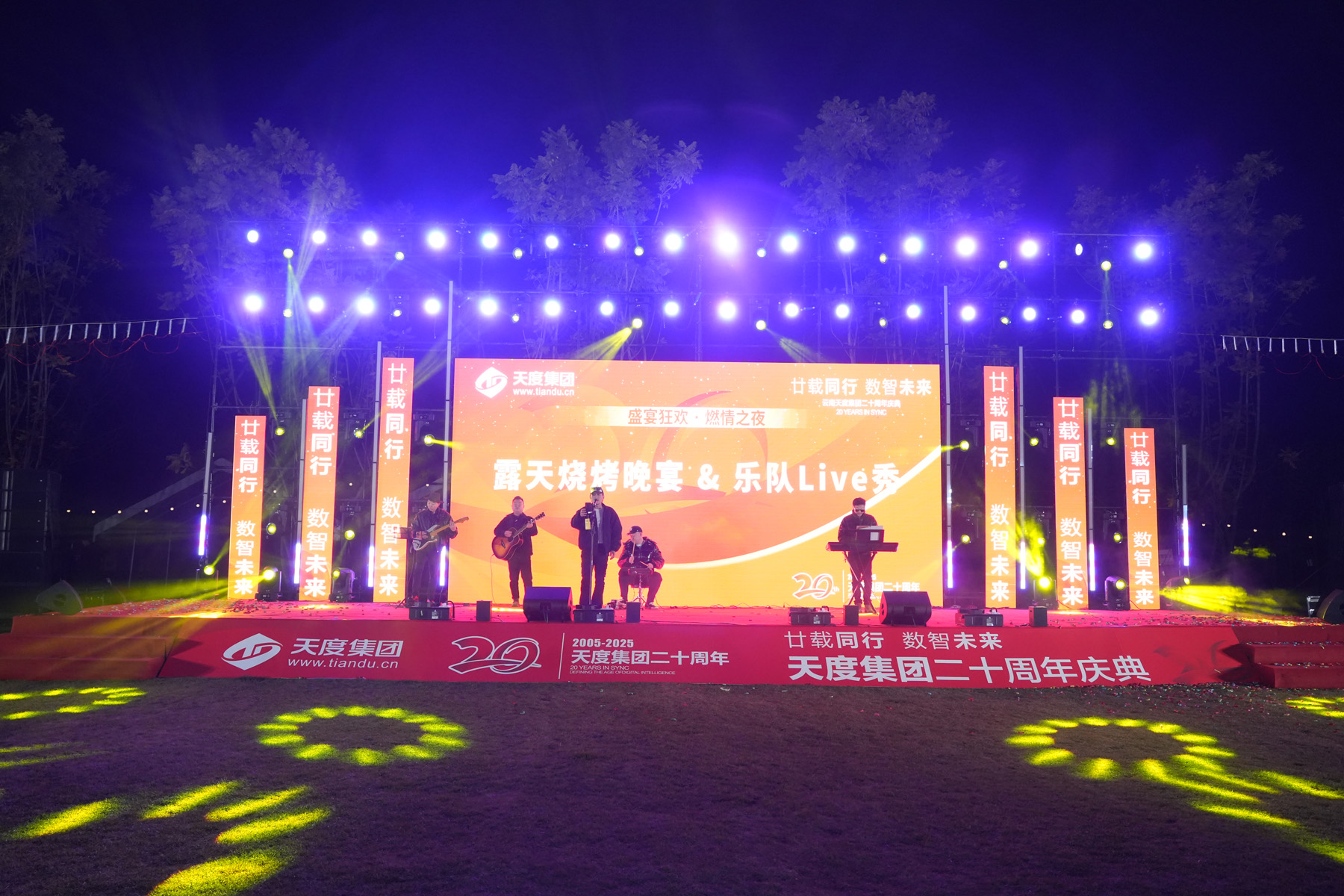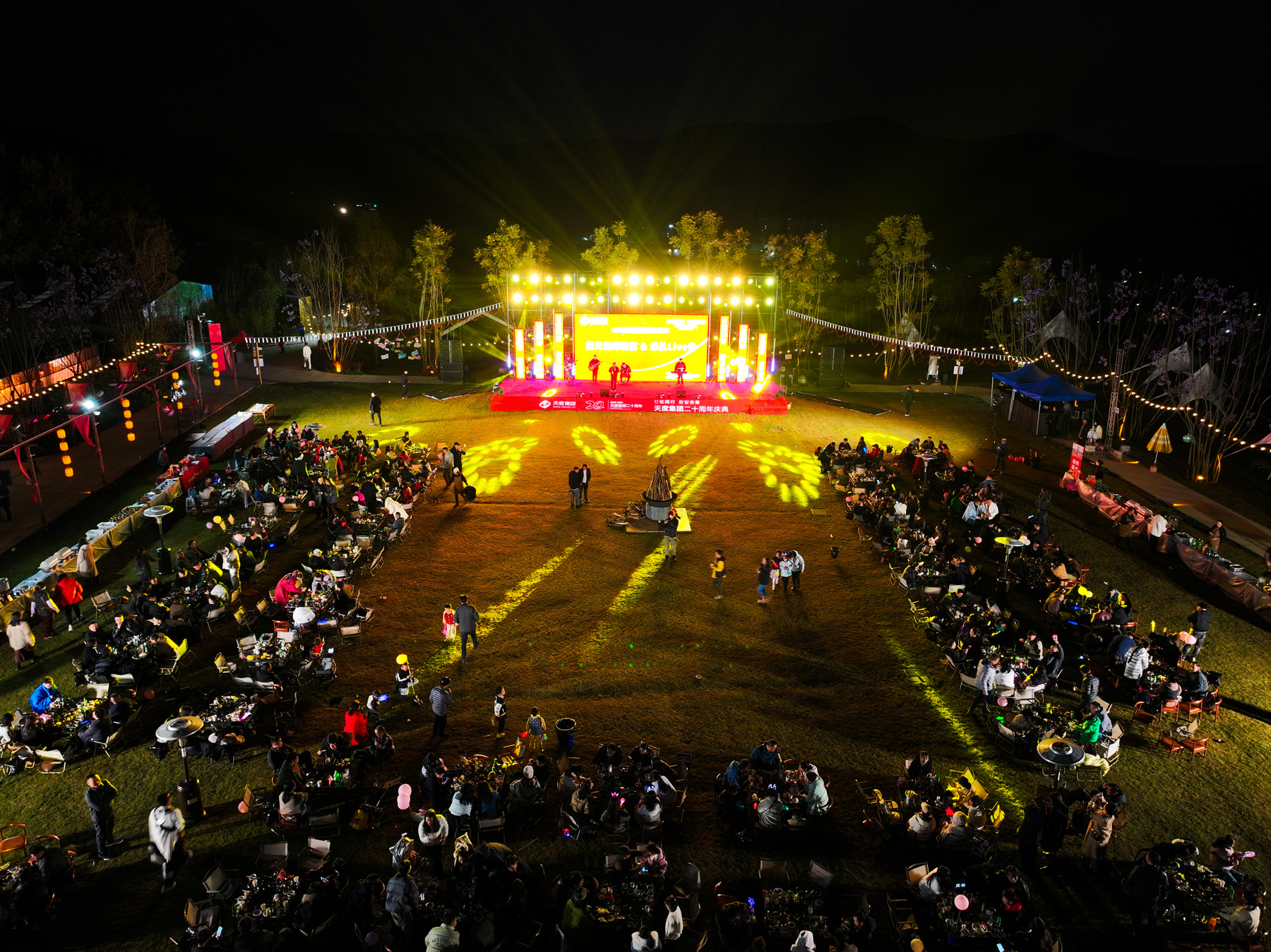 仪式过后,露天烧烤晚宴火热开启!美食美酒,畅叙情谊,大家尽情享受这场味觉盛宴。乐队也从暖场伴奏转为激情Live秀,《海阔天空》《追梦赤子心》等经典旋律引发全场共鸣,点歌环节更让现场成为欢乐的海洋。