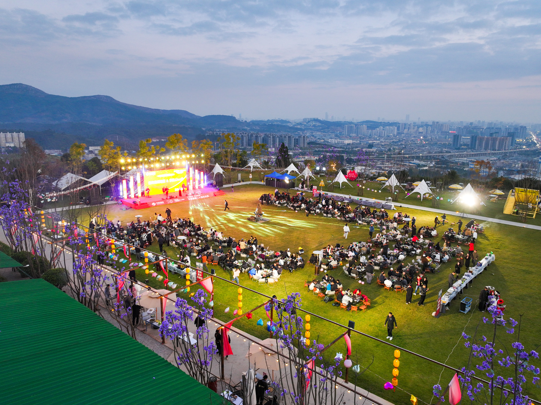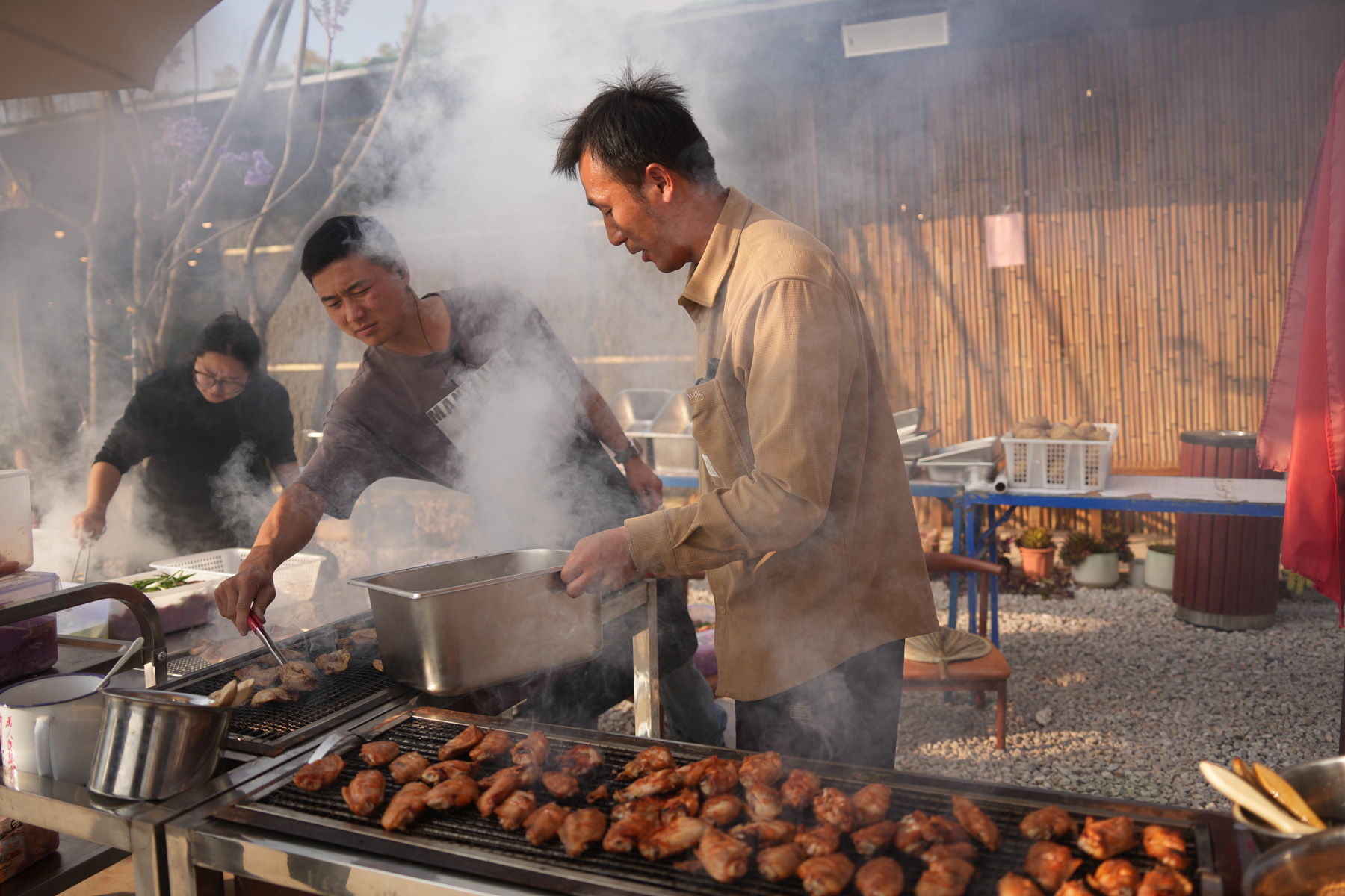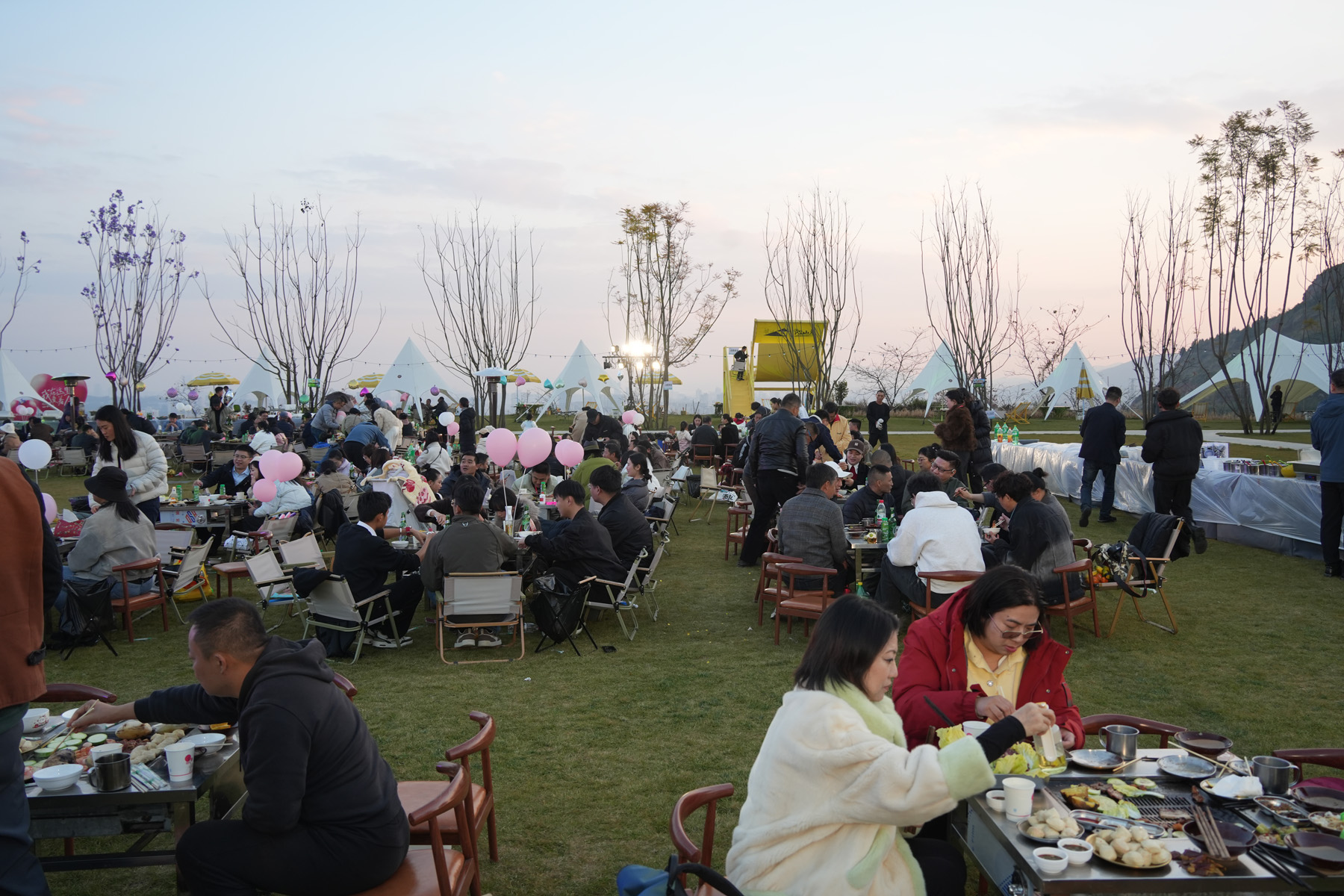 仪式过后,露天烧烤晚宴火热开启!美食美酒,畅叙情谊,大家尽情享受这场味觉盛宴。乐队也从暖场伴奏转为激情Live秀,《海阔天空》《追梦赤子心》等经典旋律引发全场共鸣,点歌环节更让现场成为欢乐的海洋。