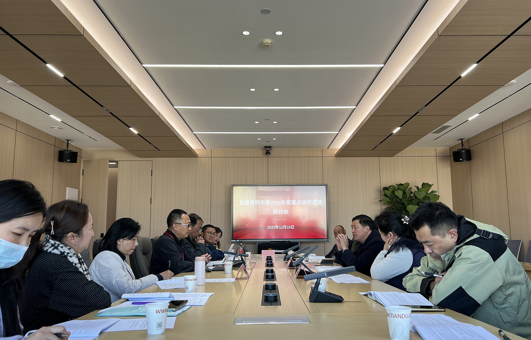 月19日,昆明市政协副主席、民盟昆明市委会主委吴波主持召开2026年度盟市委重点调研选题工作研讨会,总结2025年度参政议政工作,谋划筹备2026年度重点调研选题,为议政建言奠定基础。